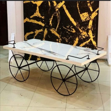 White Cart Center Table with Wheels