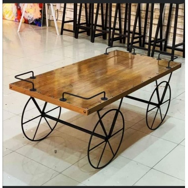 Brown Cart Center Table with Wheels